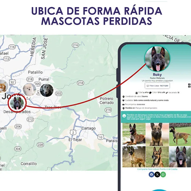 Es un identificador digital de material resistente que contiene un QR que al ser escaneado, mostrará la información de la mascota reportada como perdida.